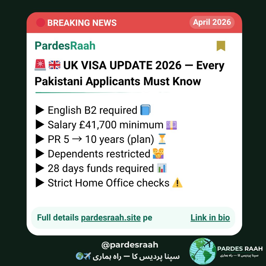 For free UK visa guides, document checklists, and daily immigration news made for Pakistani applicants follow PardesRaah on YouTube, Instagram, Facebook, TikTok and X.